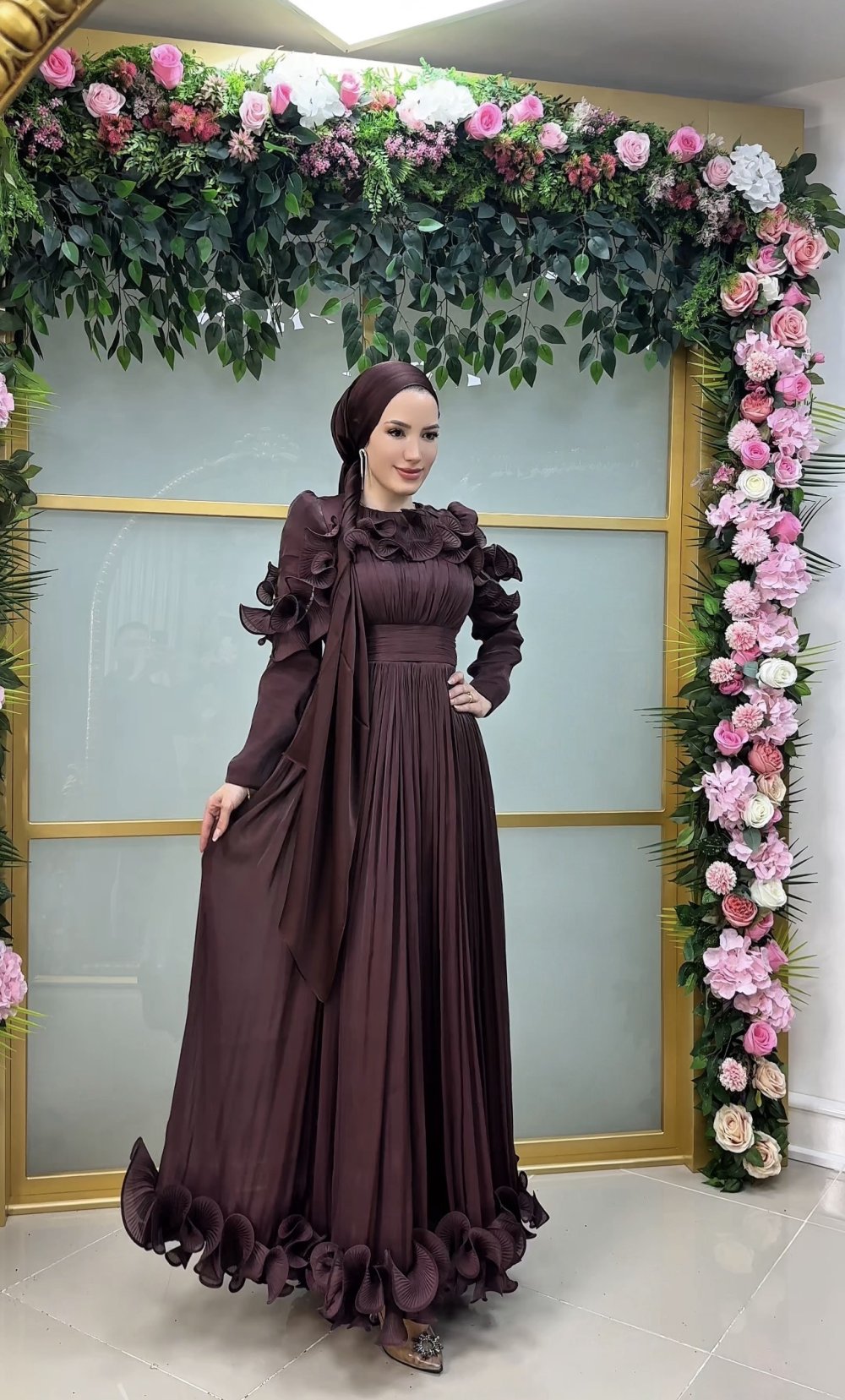 Çiçek abiye Kahverengi