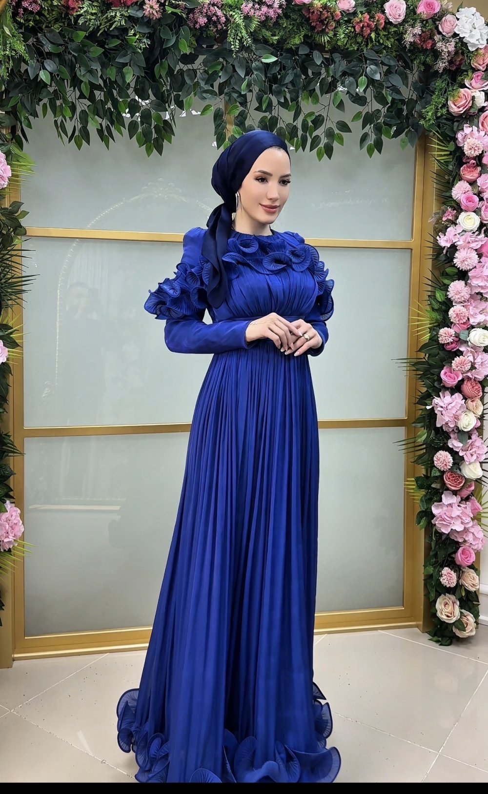 Çiçek abiye Saks Mavisi